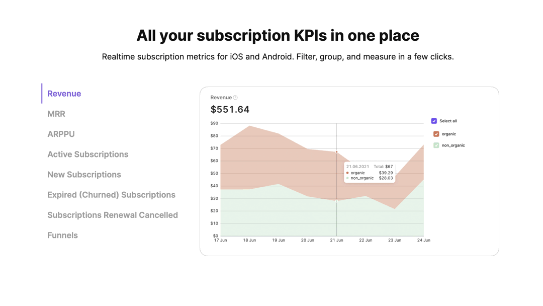 Adapty 将所有订阅事件发送到分析服务,例如 Amplitude、Mixpanel 和 AppMetrica。